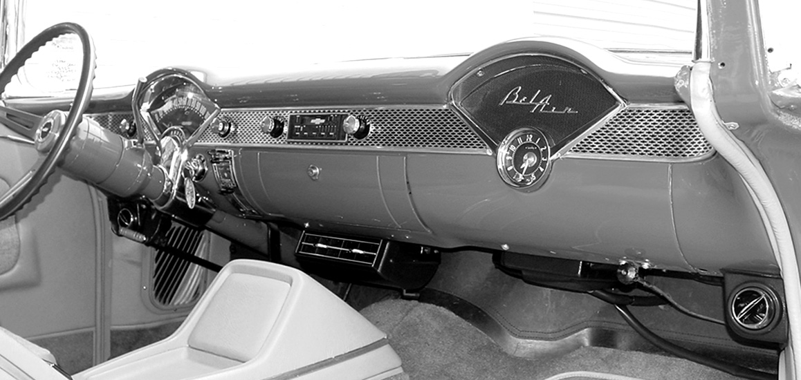 Stamped steel heater-delete panel is included in ‘57 Chevy Sure Fit kit (Includes rubber grommets).