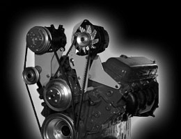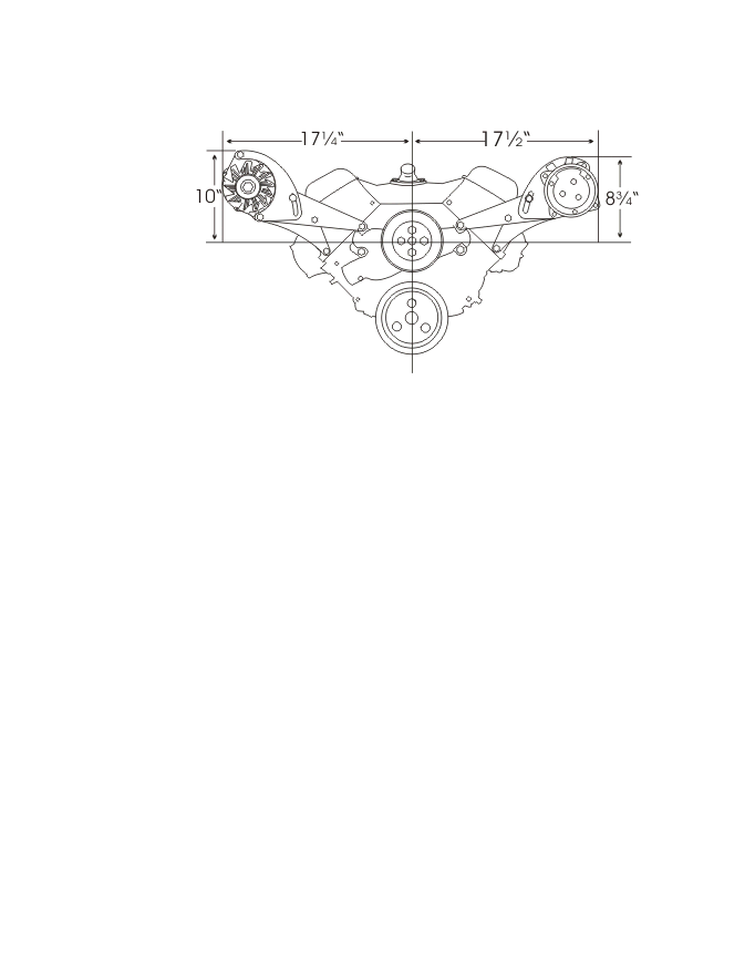 This bracket is designed to be used with the factory alternator mount, eliminating the need to purchase both brackets. The compressor belt runs in the factory A.C. groove and the bracket is complete with idler assembly.