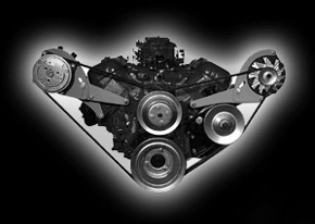Engineered for low hood applications. Works great on any vehicle with a wide engine compartment - Trucks, 50-60's cars, etc. Bolts to the heads and water pump. WILL WORK with  factory power steering pump.