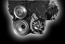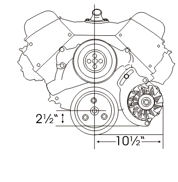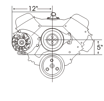 Designed for cars with low hood clearance - Camaros, Chevelles, etc. Works on any vehicle with wide engine compartment. Bolts to head and water pump. Works with factory alternator and power steering pump.