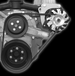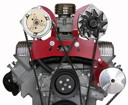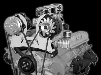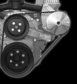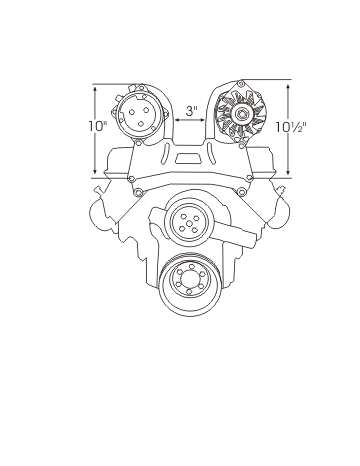Due to the renewed intrest in nostalgia motors we have designed a bracket for the 401/425 Nailhead Buick. Steel bracket mounts to the intake and water crossover manifold. Two groove water pump and crankshaft pulleys are required for this application.