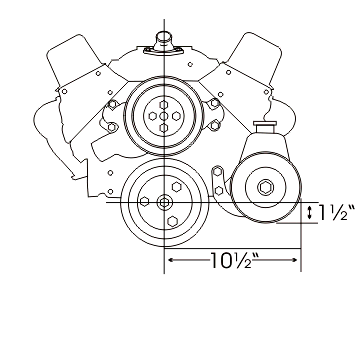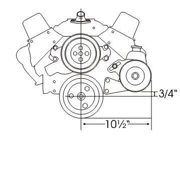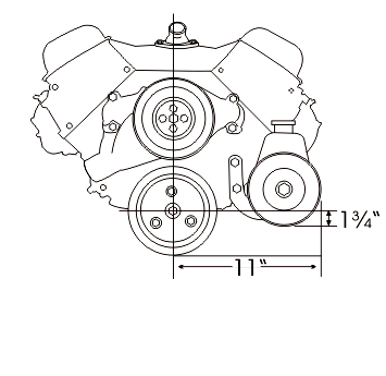 This bracket is designed for the Chevrolet Saginaw non-metric power steering pump with the attached reservoir. Allows clearance for the alternator belt no matter where the alternator is mounted. These pumps were used on most Chevrolet applications with short and long water pumps until the early 1980's. Short water pump applications are normally driven off an add-on third crankshaft pulley. These pulleys are available from Chevrolet under Part Number 3751232 or from us. (Short Water Pump Only)