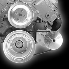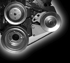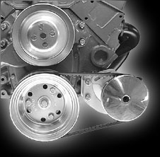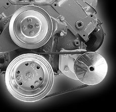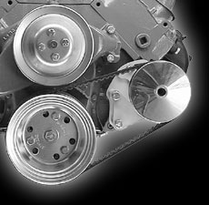 This Big Block bracket is designed for the Chevrolet Saginaw non - metric power steering pumps with the attached reservoir. They allow clearance for the alternator belt no matter where the alternator is mounted. These pumps were used on most Chevrolet applications with short and long water pumps until the early 1980's. Short water pump applications are normally driven off an add - on third crankshaft pulley. These pulleys are available from Chevrolet under Part Number 3751232 or from us.(Short Water Pump Only).