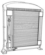 The only condenser anywhere designed for street rods (‘32- 40 Fords and most pre-’48 cars) that will fit the tight spots and still deliver big condenser performance!